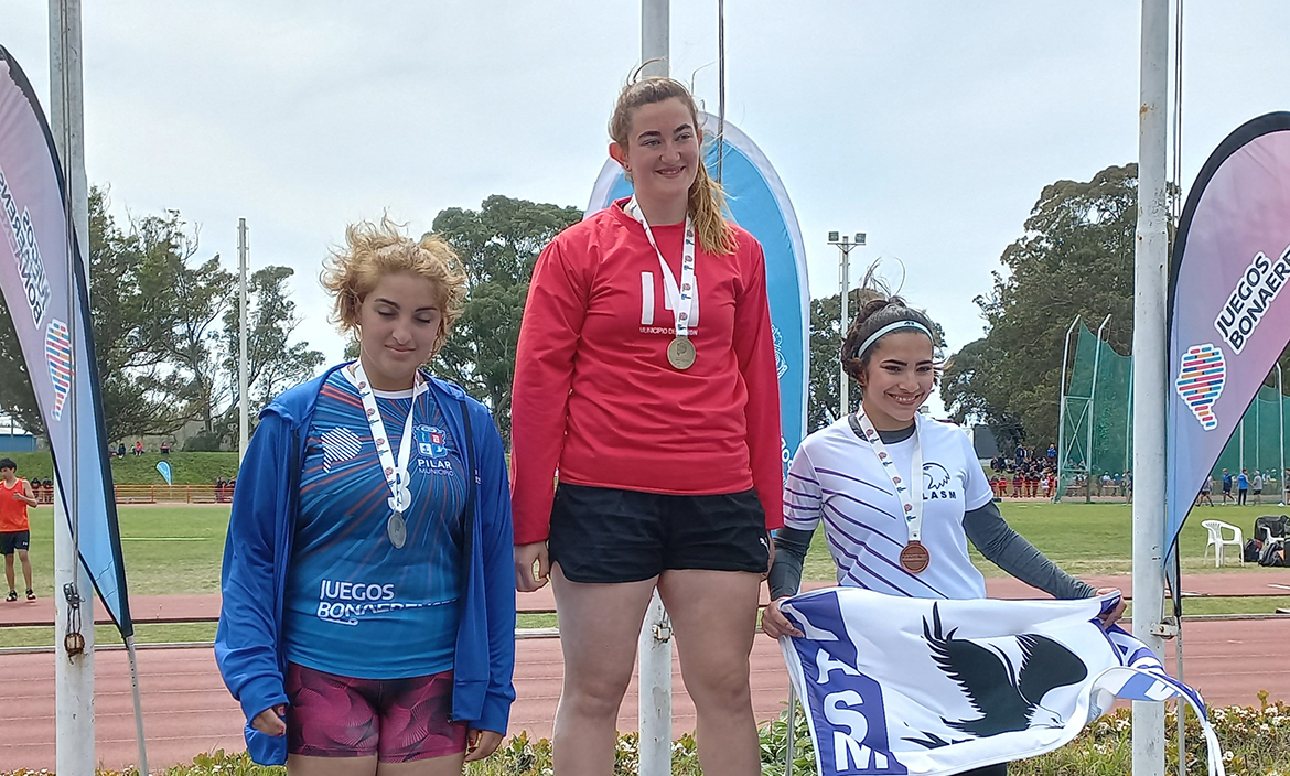 El atletismo tuvo su gran momento del día con la plata obtenida por Iara Chionetti, quien resultó segunda en el lanzamiento de disco al marcar 30,11 metros en su mejor disparo. LA delvisense, que ayer cumplió 17 años, fue premiada por su padre Pablo, quien en 1994 fue el primer pilarense en la historia en ganar un oro en los Juegos Bonaerenses.