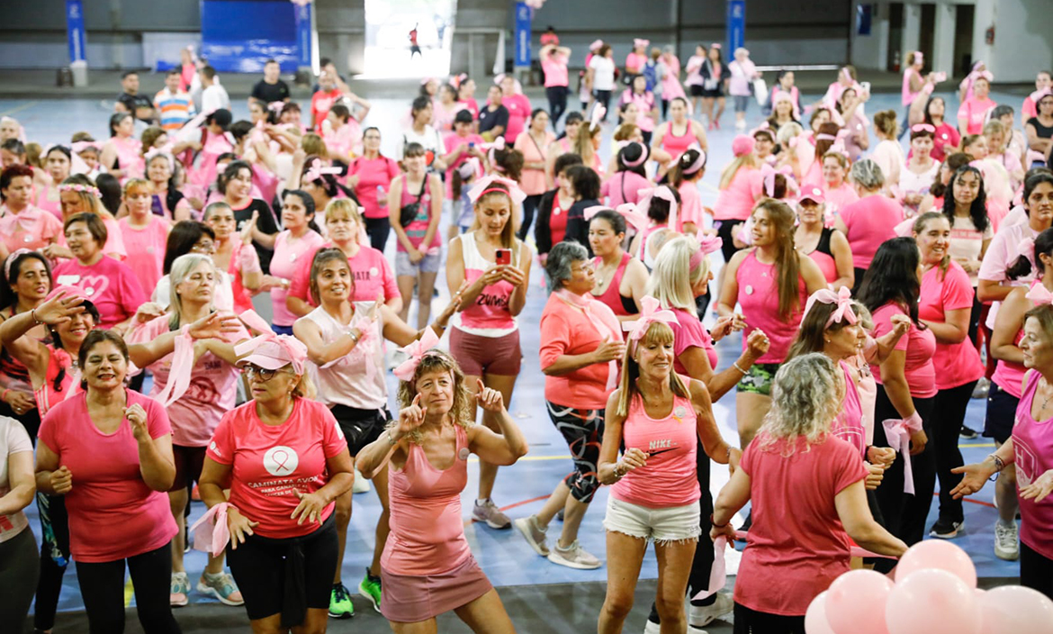 La actividad, que tuvo participación libre y gratuita y fue organizada por la dirección general de Deportes comunal, contó con la participación de cientos de personas y se dio en el marco del mes de la lucha internacional contra el cáncer de mama.