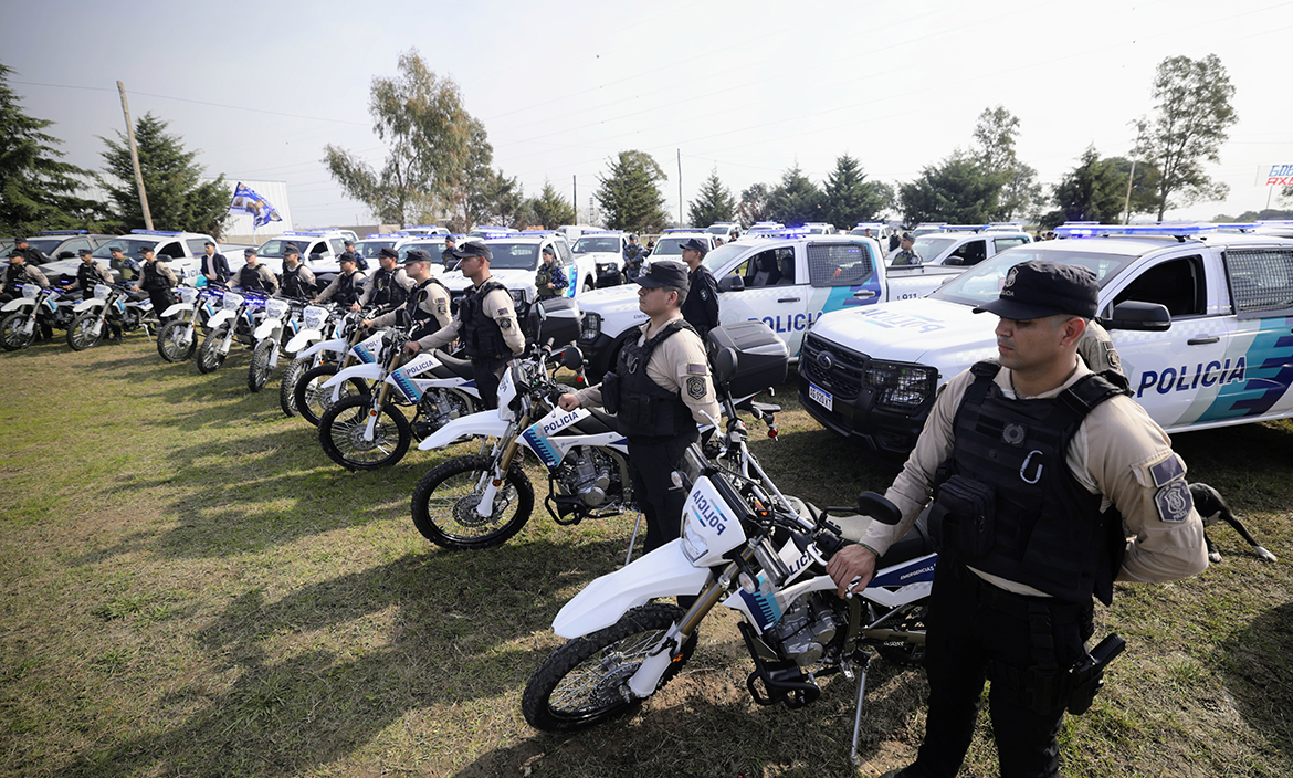 El gobernador de la provincia de Buenos Aires, Axel Kicillof, encabezó el acto de entrega de patrulleros, motos y camionetas para fortalecer las tareas de prevención del delito en el municipio de La Matanza, donde además inauguró una nueva base operativa de la Fuerza Barrial de Aproximación Norte. Fue junto a la vicegobernadora Verónica Magario; el ministro de Seguridad, Javier Alonso; y el intendente local, Fernando Espinoza.
