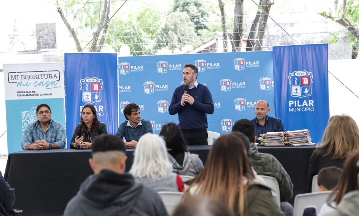 El intendente Federico Achával encabezó hoy, en el Club Municipal Del Viso, un acto de firma de escrituras a vecinos de Pilar, en el marco de la política pública de facilitar a los vecinos el título de sus hogares.