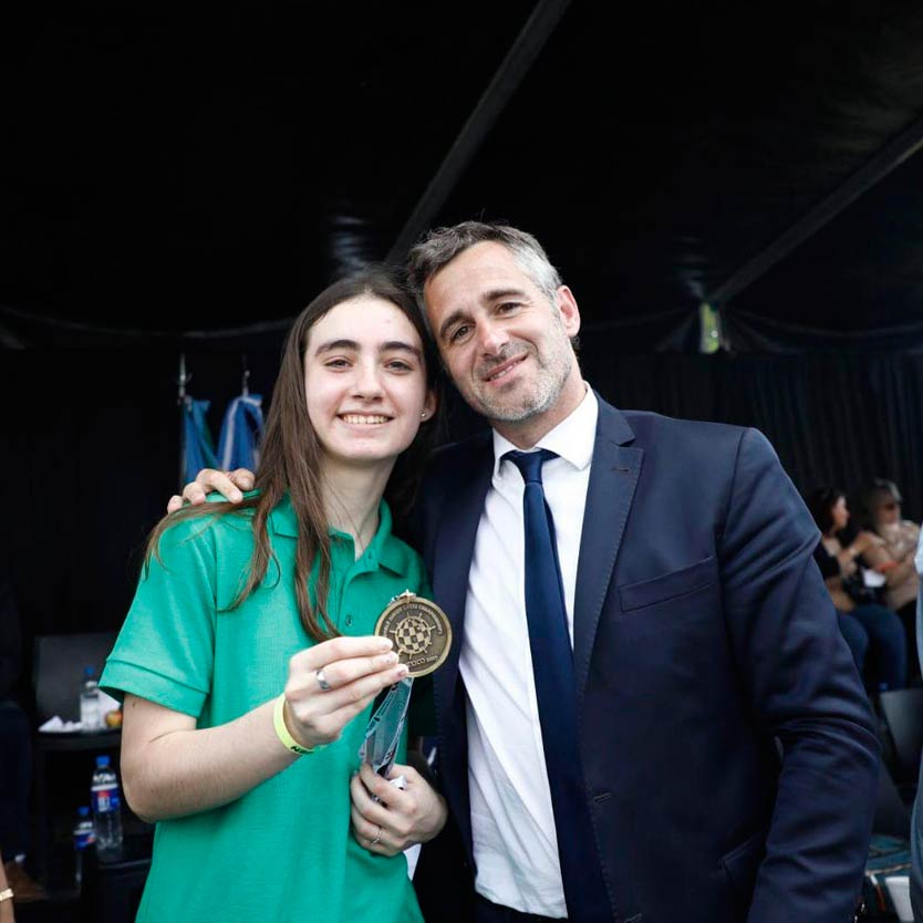 La campeona del mundo en ajedrez juvenil, Candela Francisco, participó de este día tan importante para Pilar.