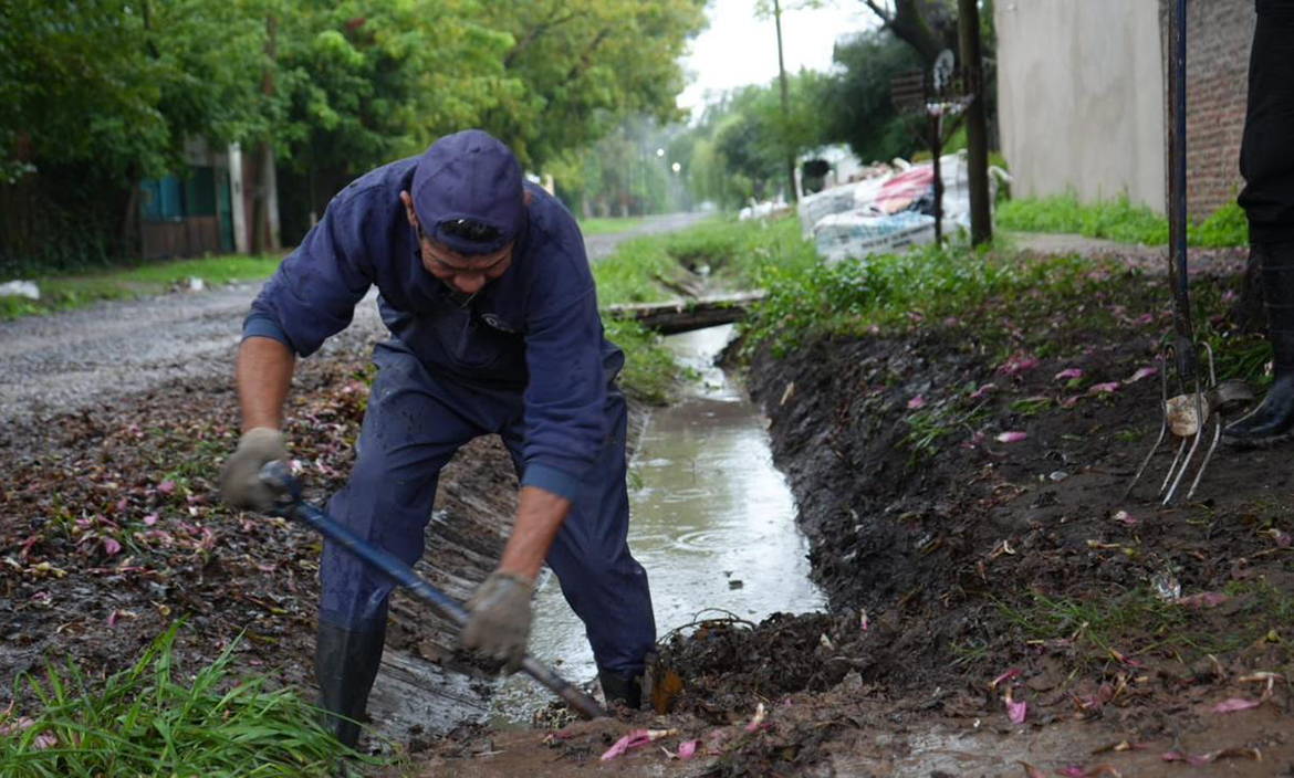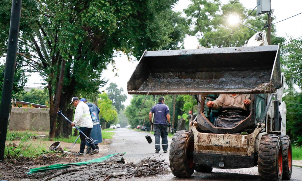 Frente a la situación climática extraordinaria que está generando fuertes lluvias y tormentas que se extienden hace cuatro días, el Municipio continúa realizando trabajos de desobstrucción para liberar la circulación del agua en todos los barrios de Pilar.