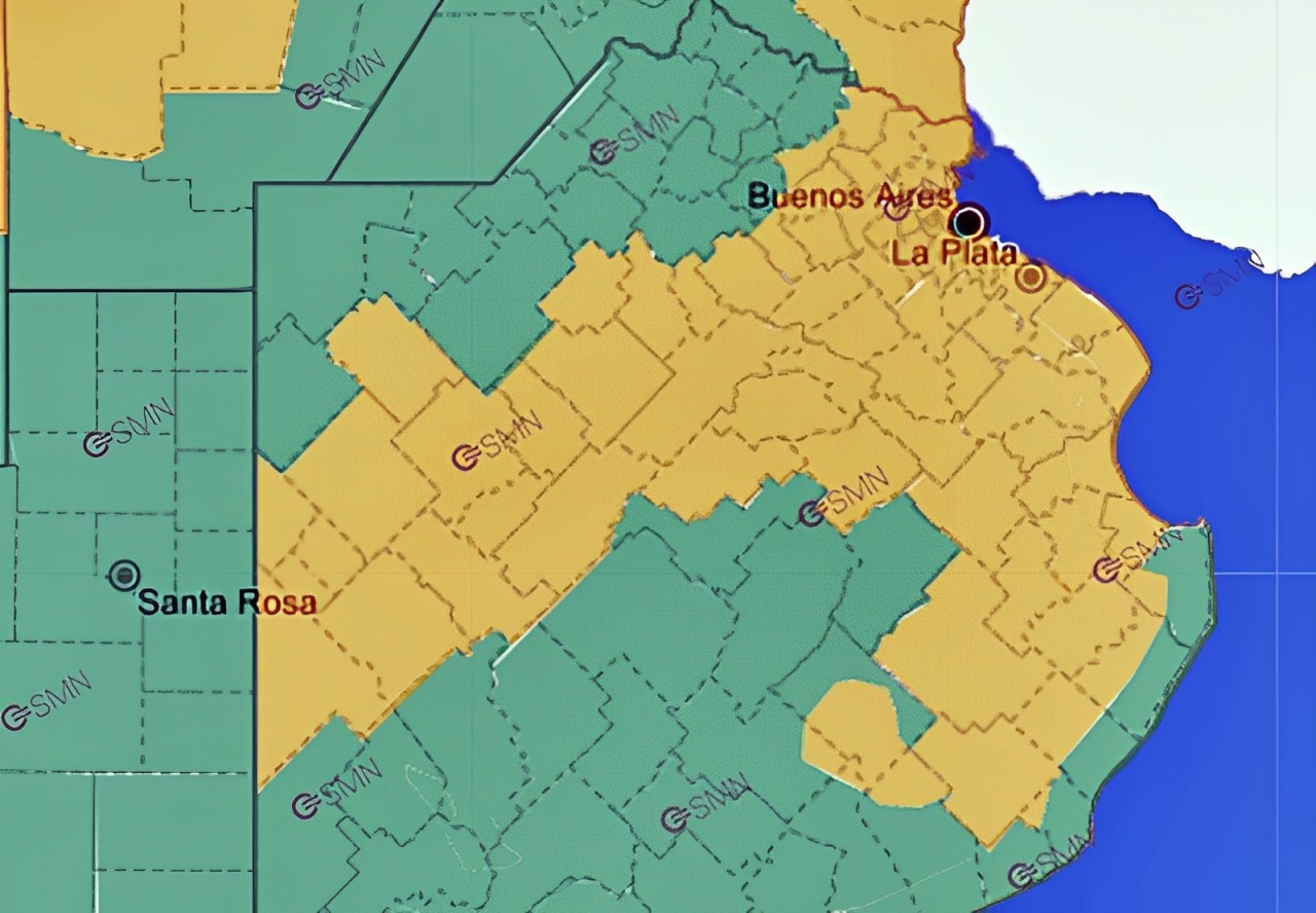 Las otras regiones que abarca la alerta amarilla son el sur de Entre Ríos, parte del sur de Córdoba y del este de San Luis.