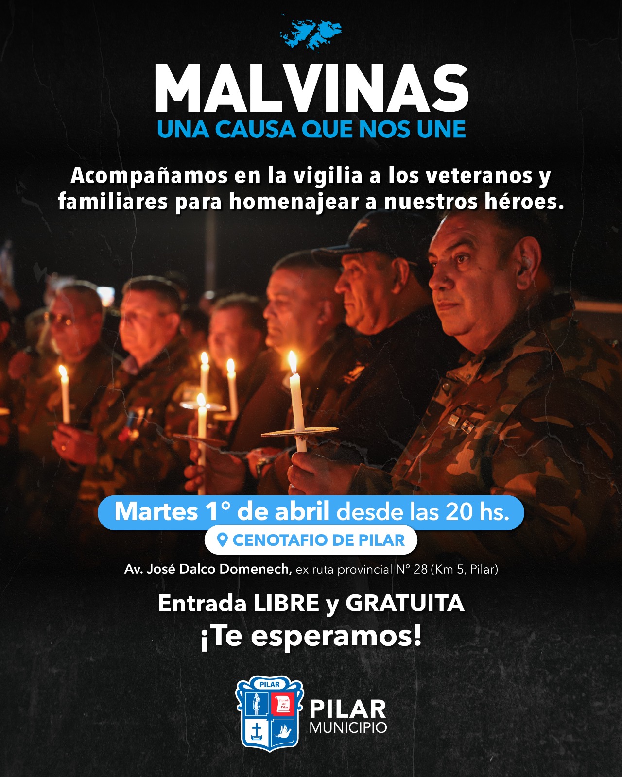 El martes 1 de abril, a partir de las 20 horas, vecinos y vecinas de todo Pilar pondrán acercarse a compartir la tradicional vigilia para honrar a nuestros héroes. En tanto, el miércoles 2 a partir de las 12:00 horas, familias y amigos podrán vivir una increíble experiencia inmersiva con realidad virtual y descubrir el museo interactivo con objetos, testimonios y documentos.